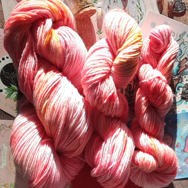 Chaque écheveau teint à la main est unique, Il est conseillé de tricoter en alternant les écheveaux.